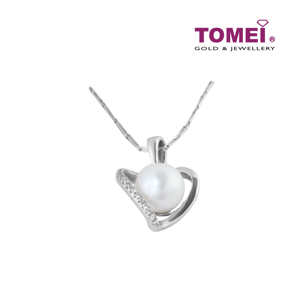 TOMEI Glamorously Verve Heart Pendant Set, Pearl White Gold 585 (P4523)