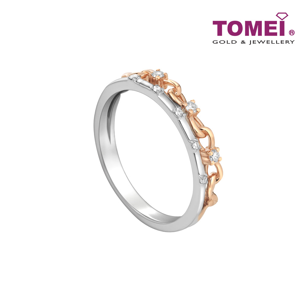TOMEI Love Joins Us Together Diamond Ring, White+Rose Gold 585