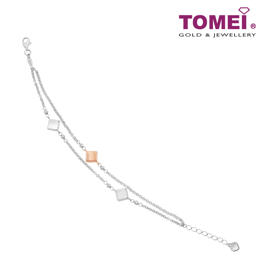 TOMEI Double Strands Bracelet, White+Rose Gold 585
