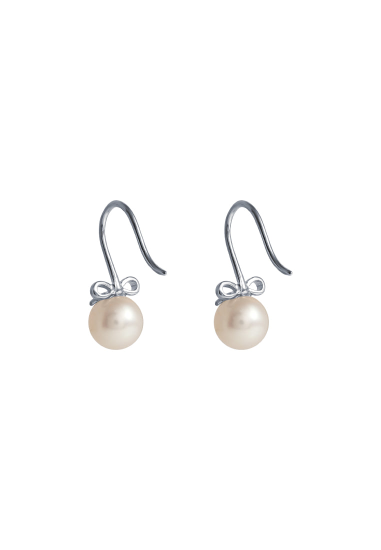 TOMEI Lovely Bow Tie Pearl Earrings, White Gold 585