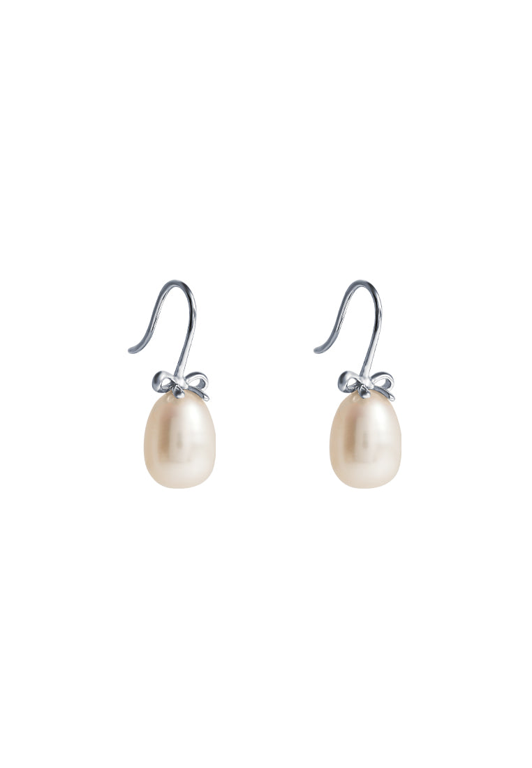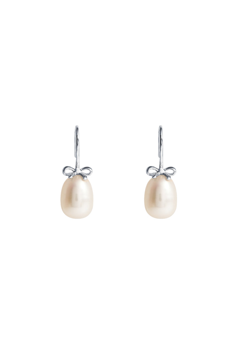TOMEI Lovely Bow Tie Pearl Earrings, White Gold 585