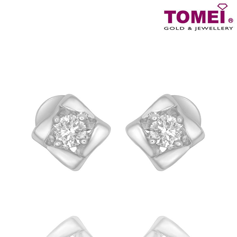 Tomei White Gold 375 (9K) "Lucky in My Life" Diamond Earrings (E1437)