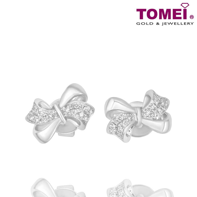 Tomei White Gold 375 (9K) "Too Sweet Ribbon" Diamond Earrings (E1973)