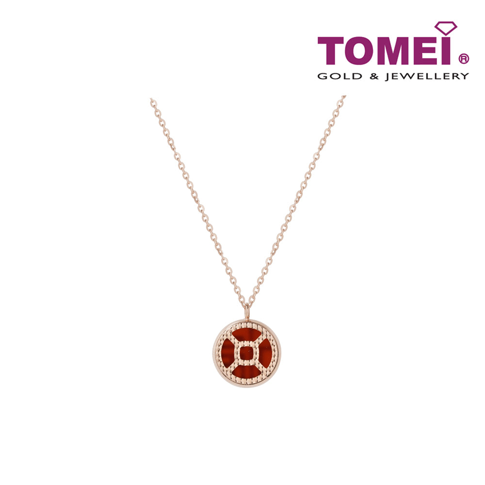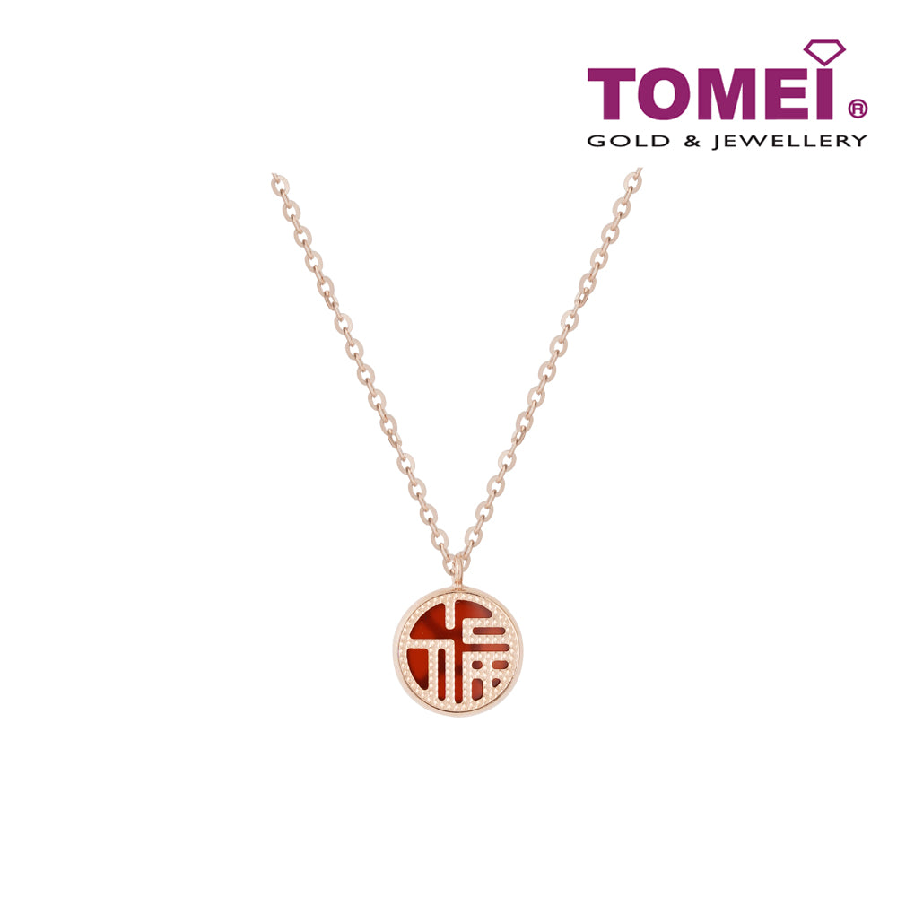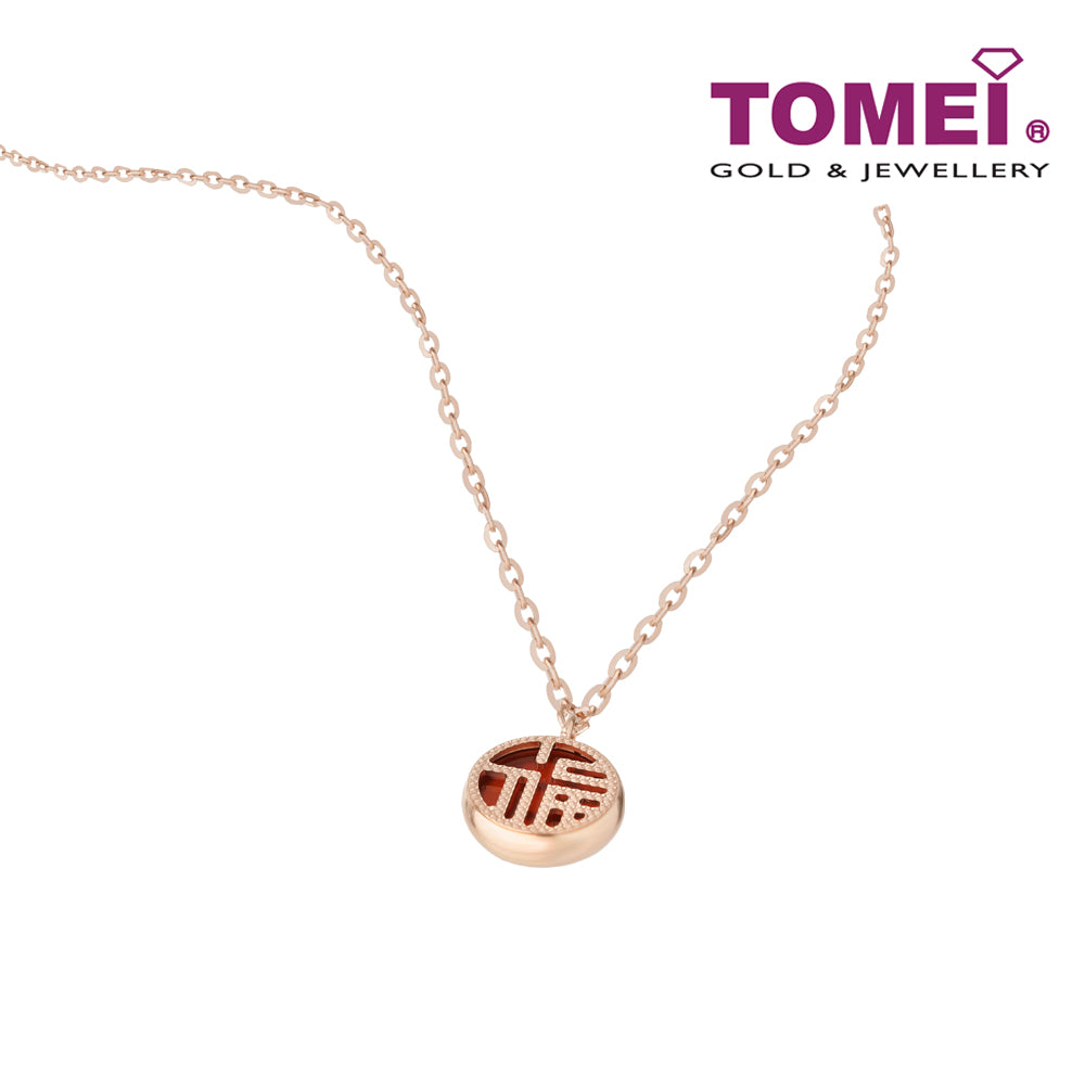 TOMEI Rouge Collection 红玉髓福字 Carnelian Fu Necklace, Rose Gold 750