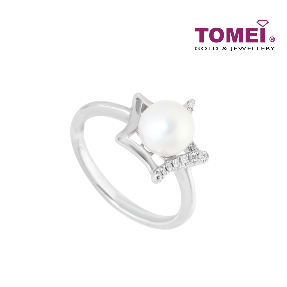 TOMEI Astral Glamour of the Seas Ring, Diamond Pearl White Gold 375 (R4217)