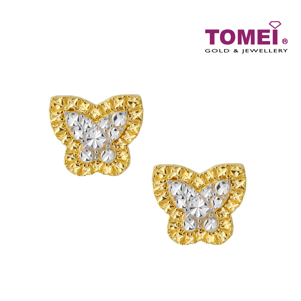 TOMEI Diamond Cut Collection Butterfly Earrings, Yellow Gold 916 (9Q-YG1262E-2C)