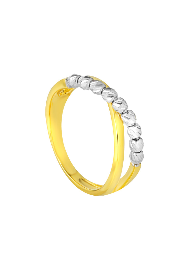 TOMEI Criss-Cross White Beads Ring, Yellow Gold 916