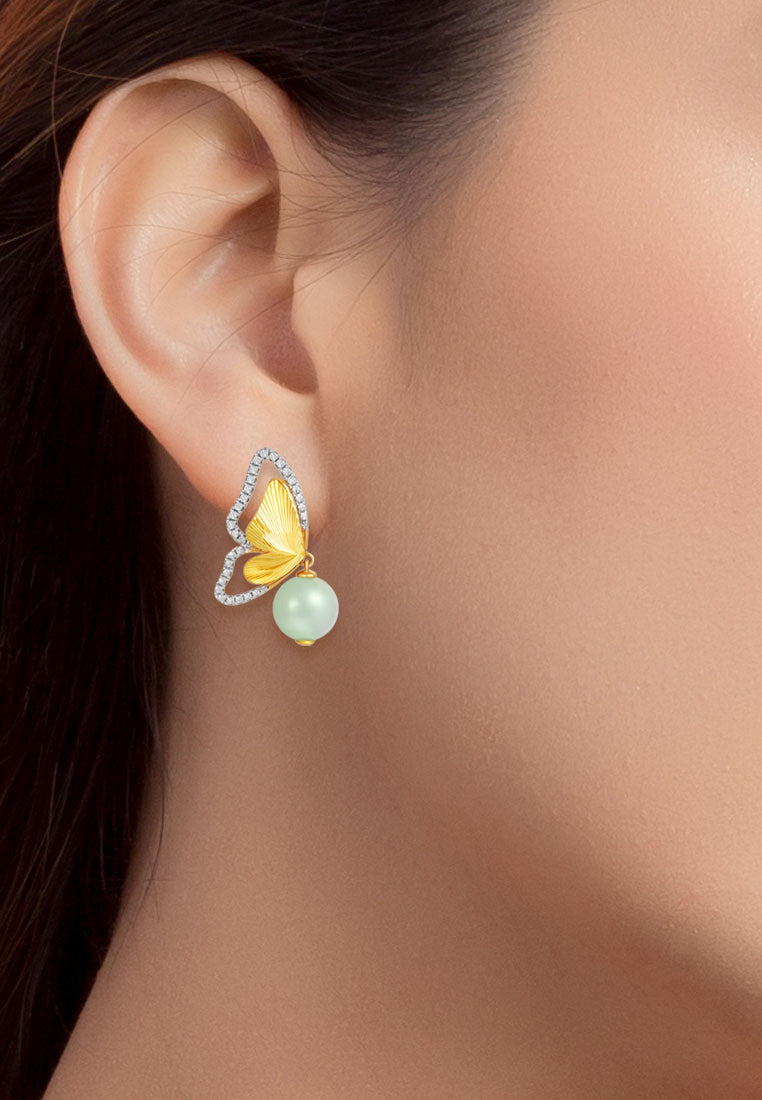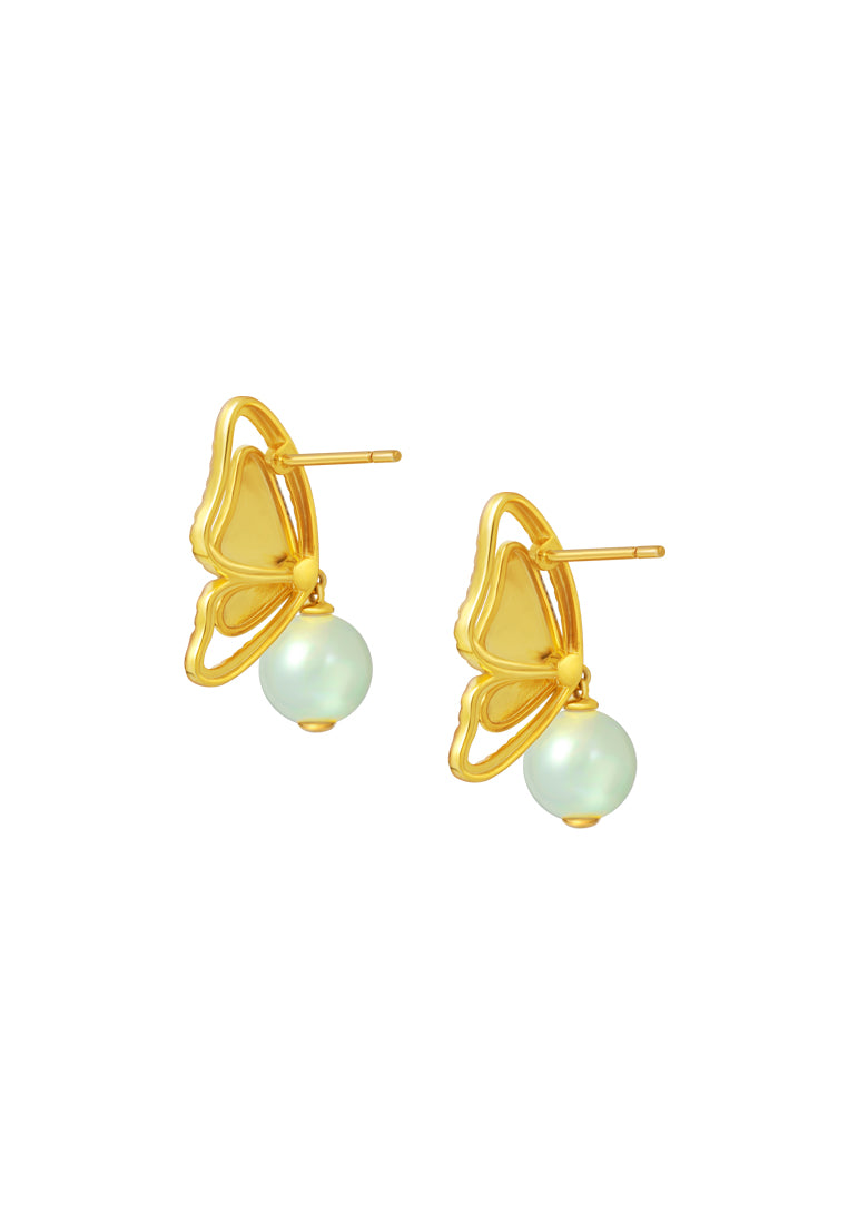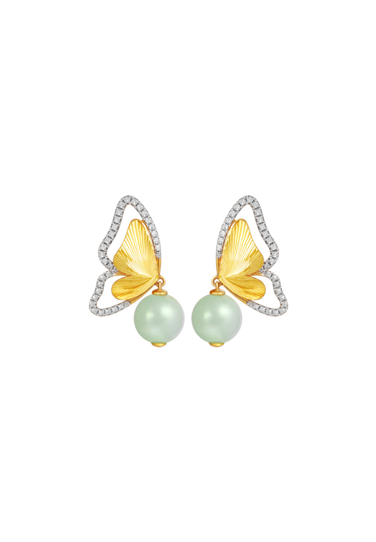 TOMEI Diamond Cut Collection Butterfly Jade Earrings, Yellow Gold 916