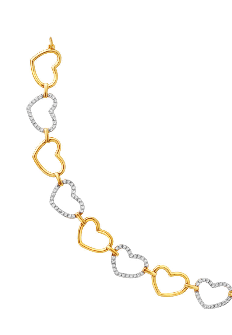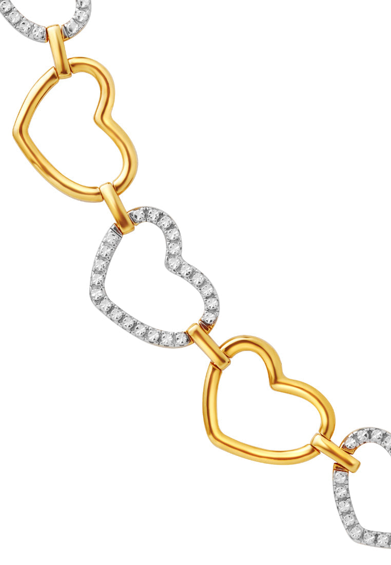 TOMEI Diamond Cut Collection Gilded Hearts Bracelet, Yellow Gold 916