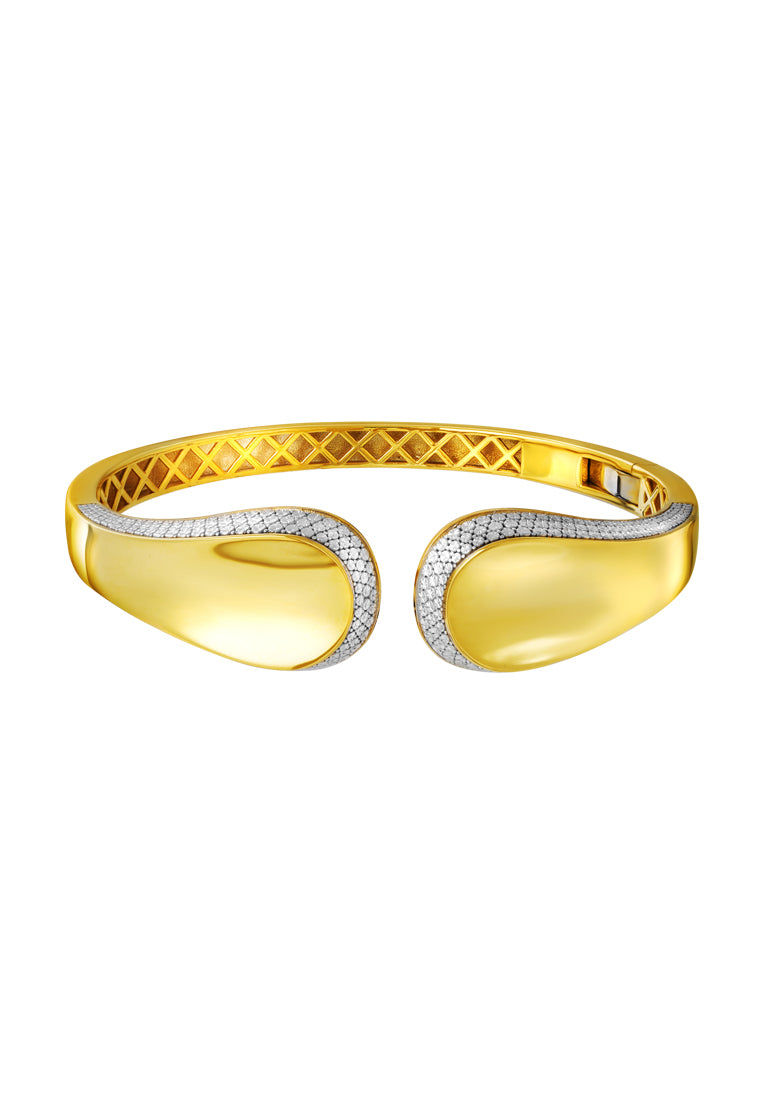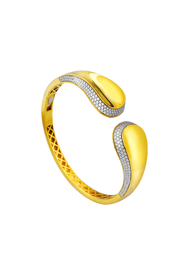 TOMEI Diamond Cut Collection Open Bangle, Yellow Gold 916