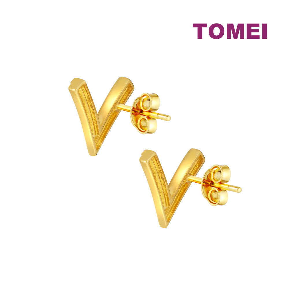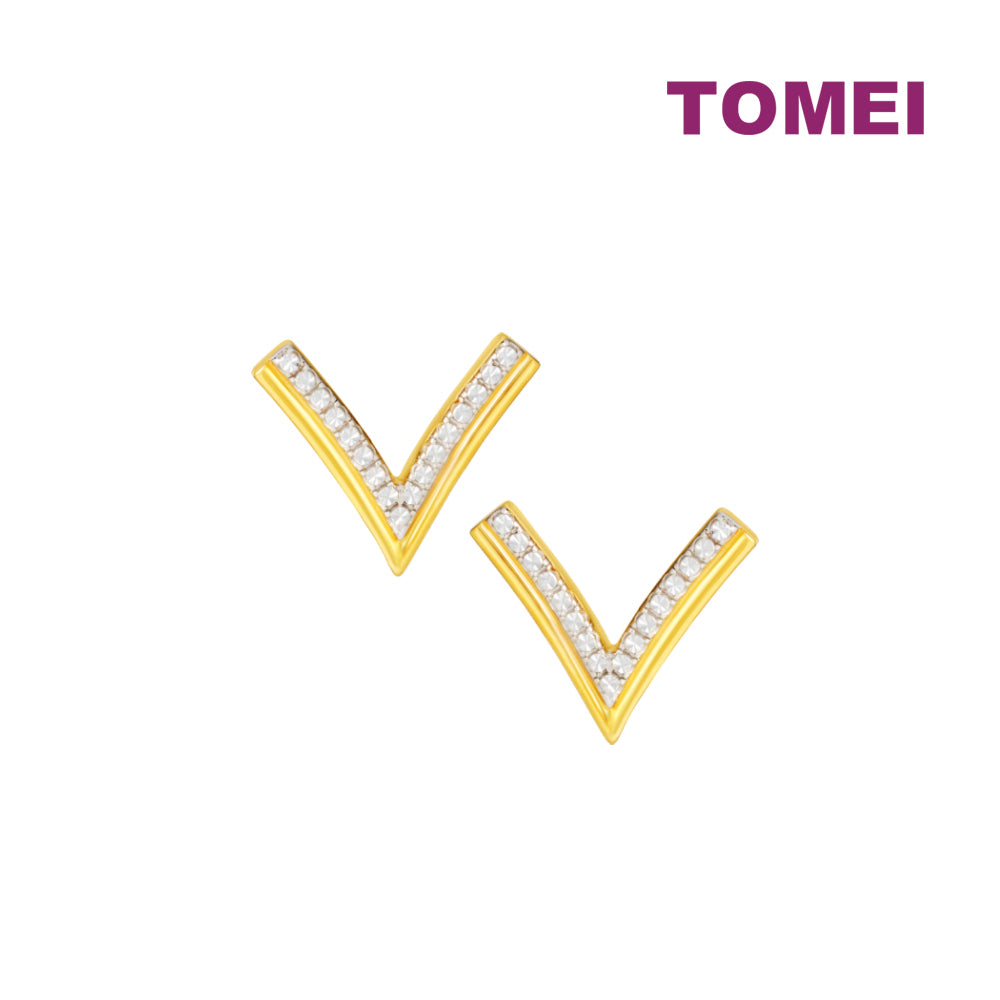 TOMEI Diamond Cut Collection V Trending Earrings, Yellow Gold 916