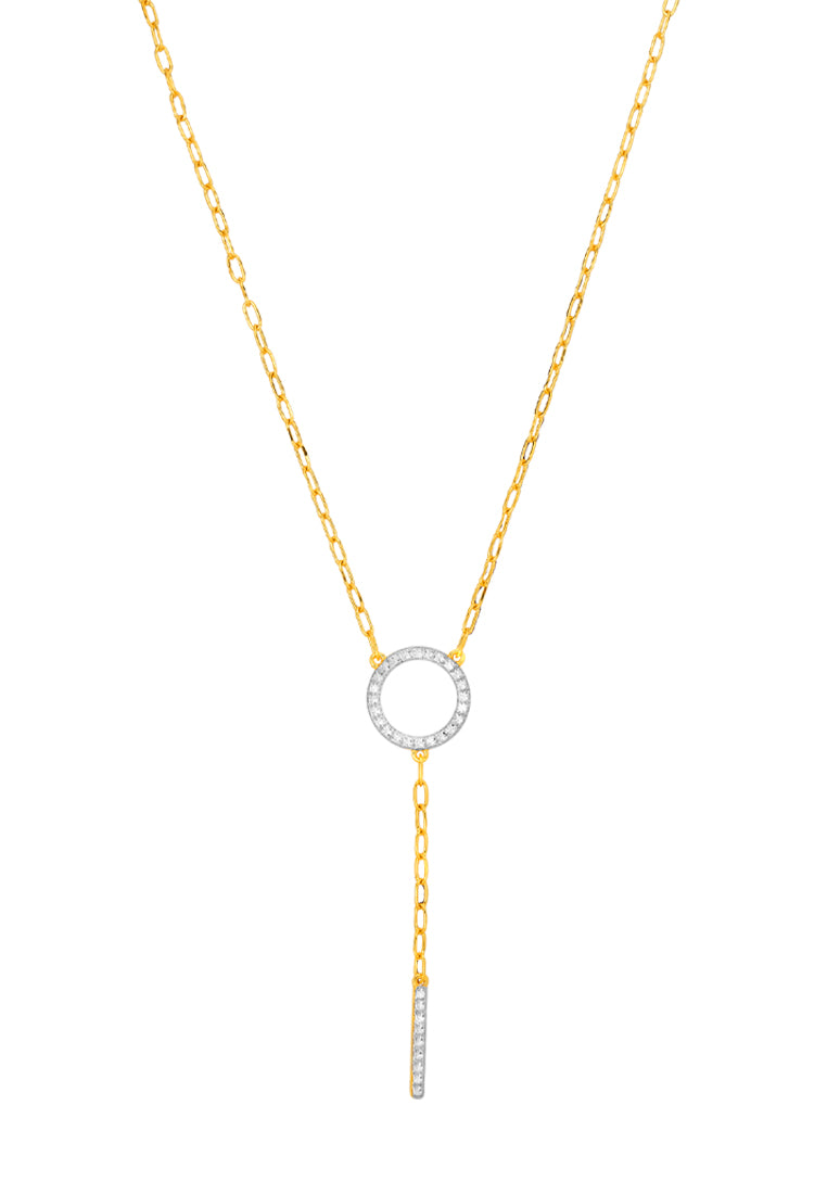TOMEI Dual-Tone Circle & Bar Necklace, Yellow Gold 916