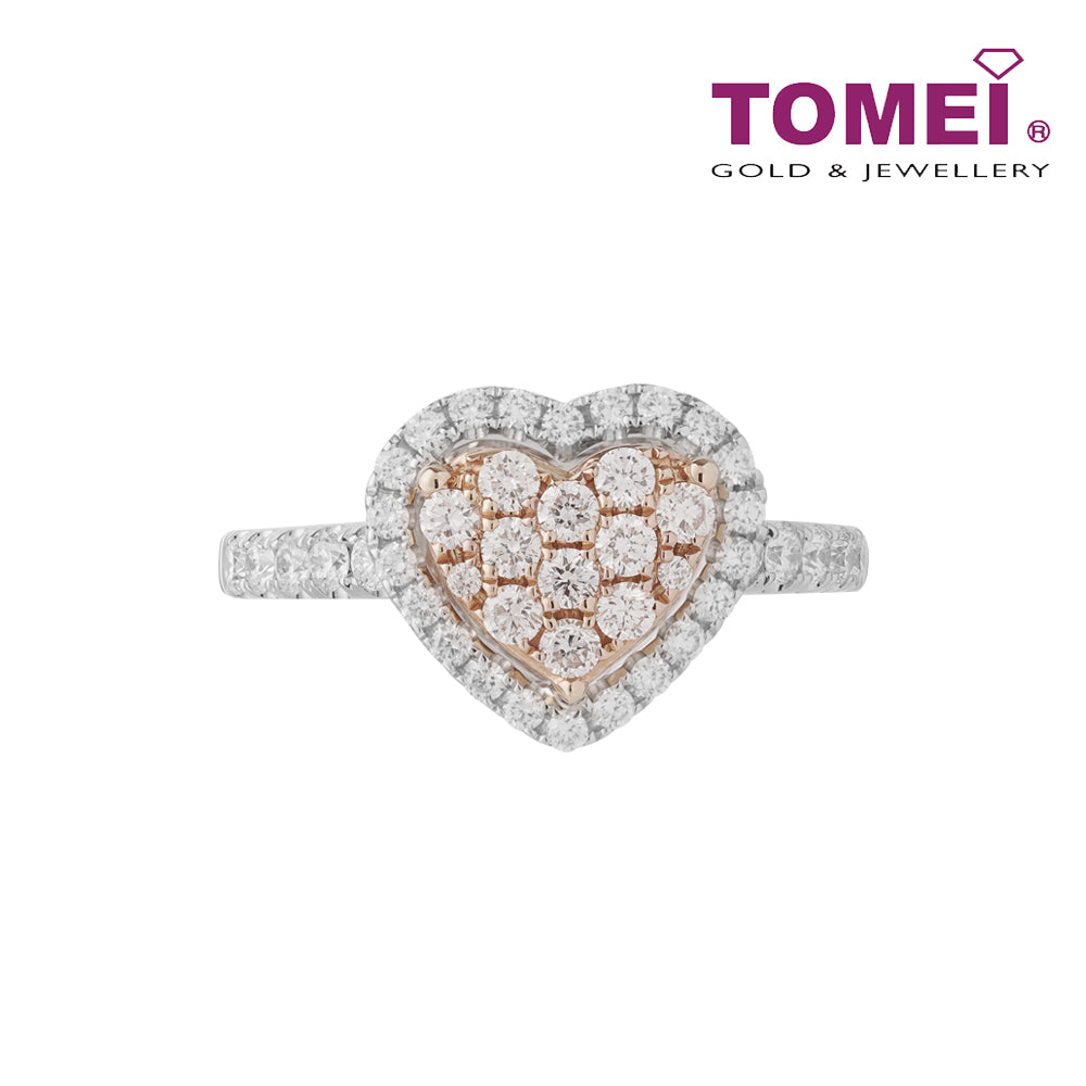 TOMEI Dual Tone Heart Diamond Ring, White+Rose Gold 750