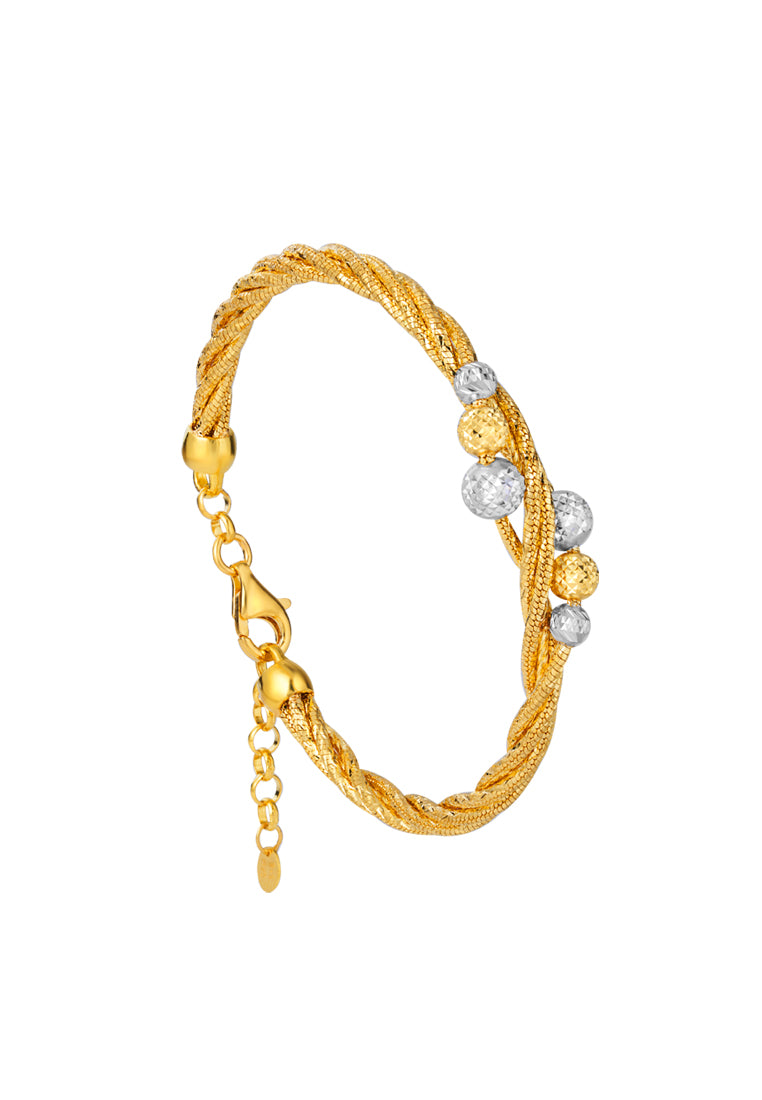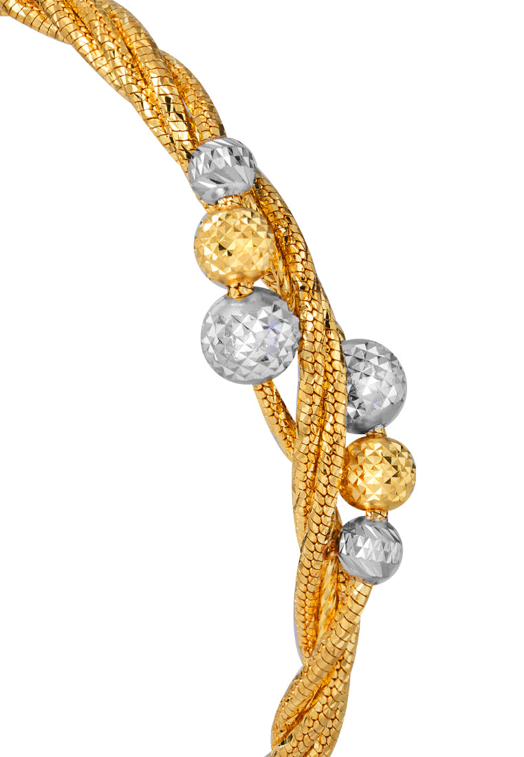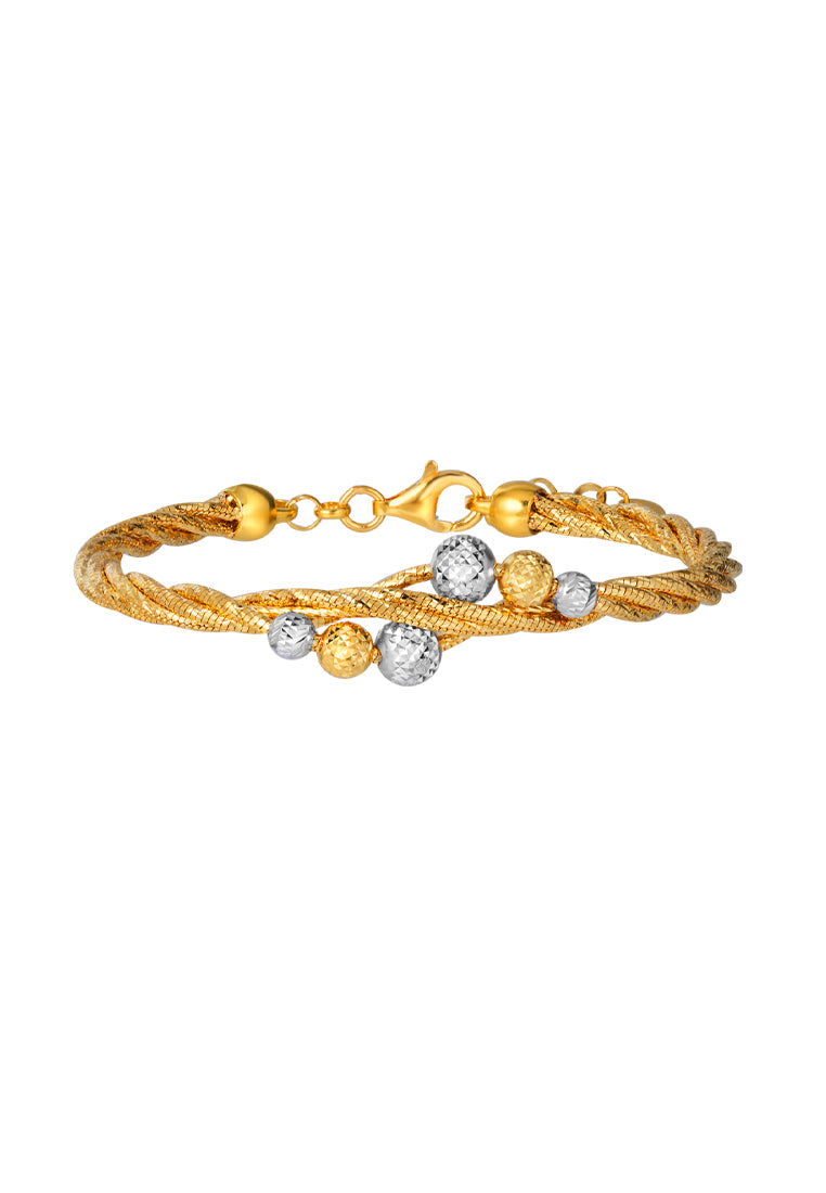 TOMEI Dual-Tone Lasered Balls Bangle, Yellow Gold 916
