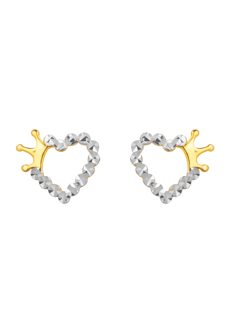 TOMEI Dual- Tone Lusso Italia Heart with Crown Earrings, Yellow Gold 916