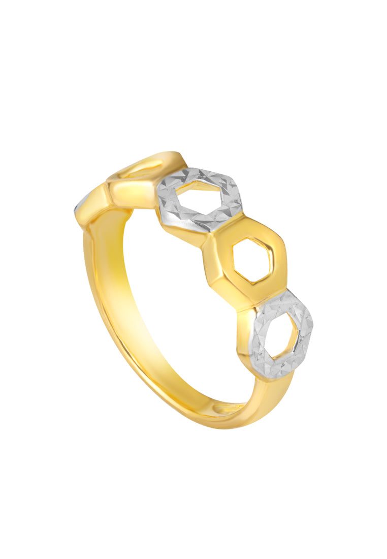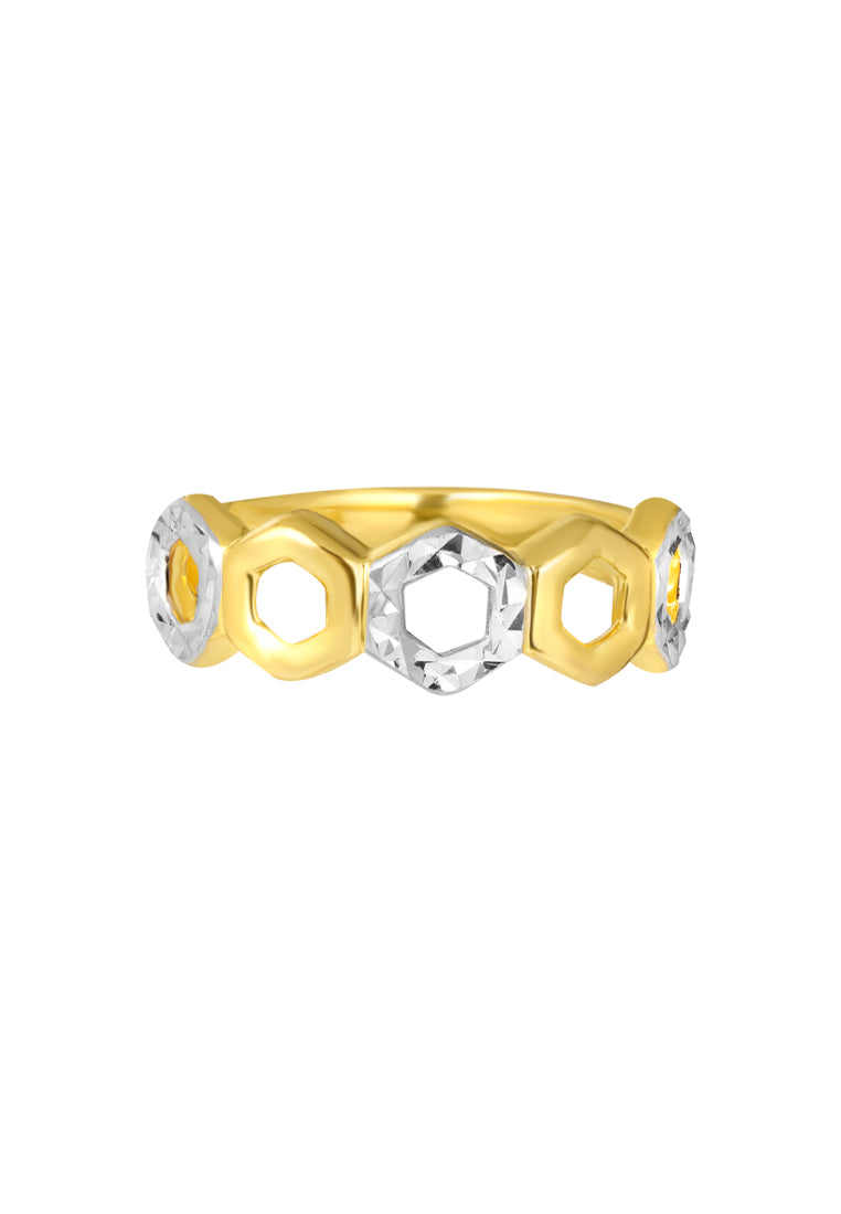TOMEI Dual-Tone Oxagon Ring, Yellow Gold 916