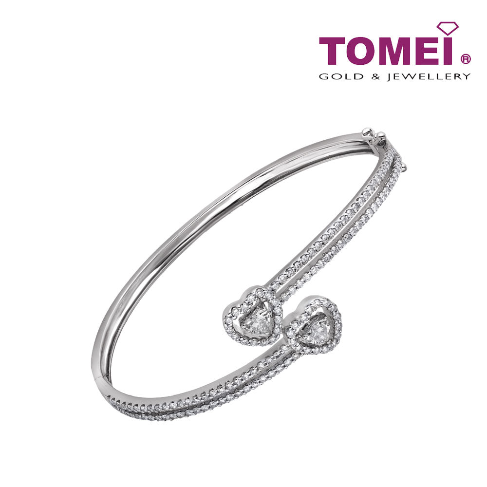 TOMEI Dwi-Hearts Diamond Bangle, White Gold 750 (B0303)