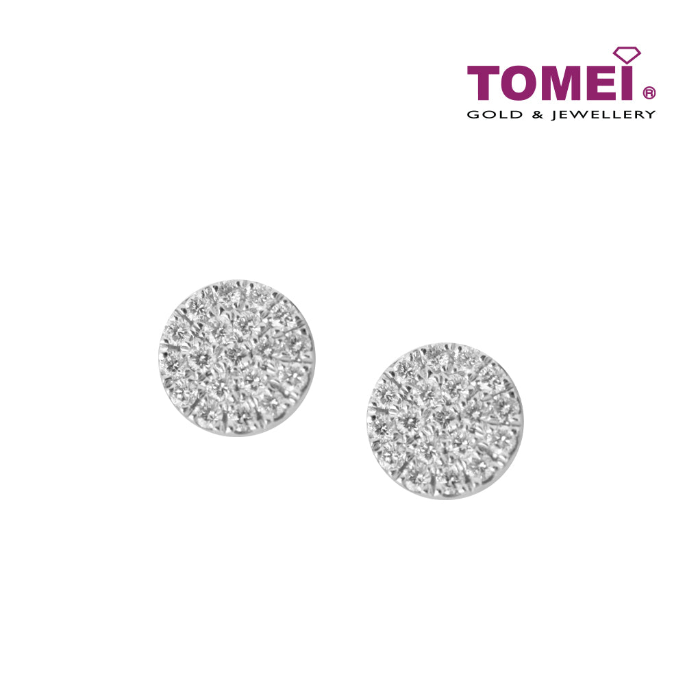 TOMEI Classic Round Stud Earrings, Diamond White Gold 585 (E1116)