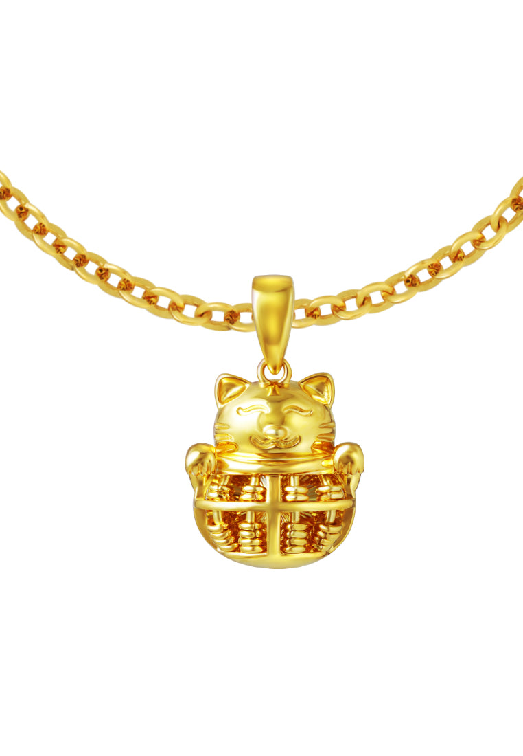 TOMEI Fortune Cat Abacus Pendant, Yellow Gold 916