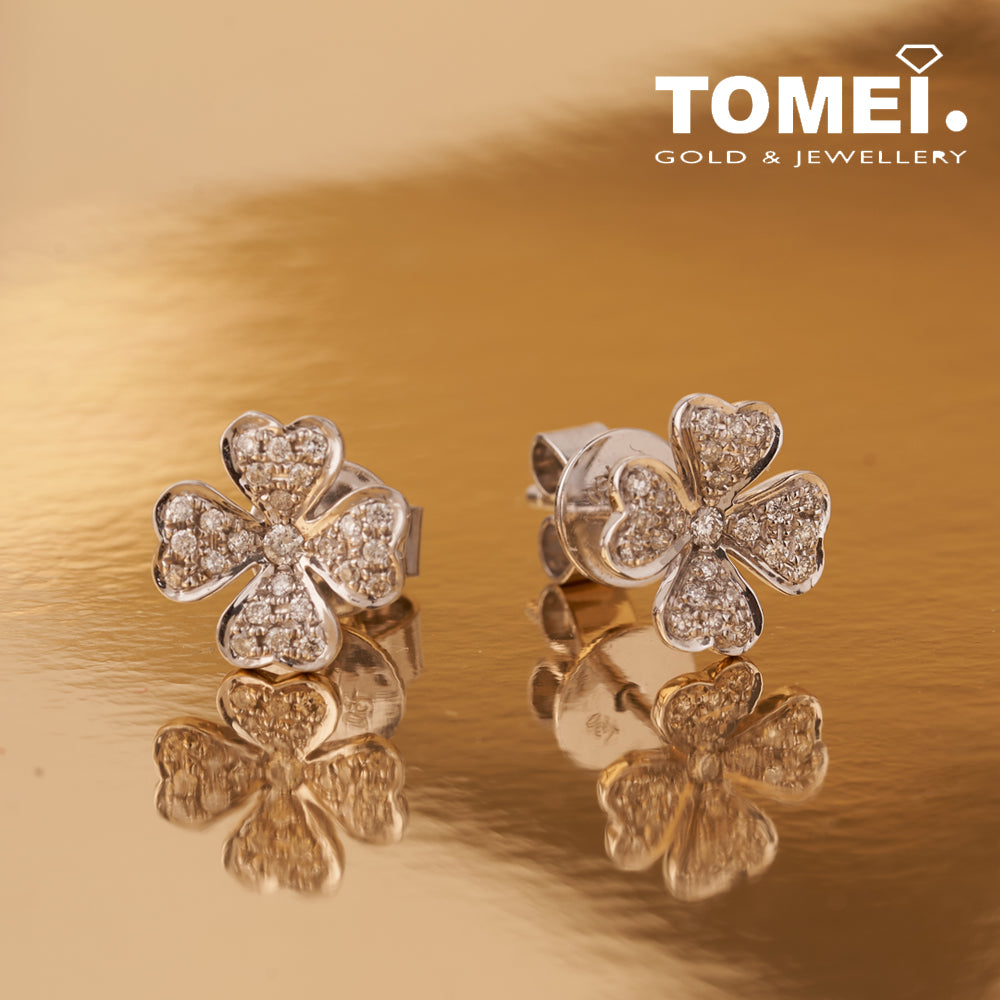 TOMEI Four Leaves Clover Diamond Earrings, White Gold 750 (E1794)