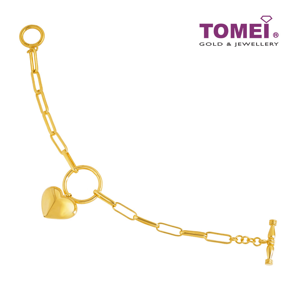 TOMEI Heart Linked Chain Bracelet, Yellow Gold 916