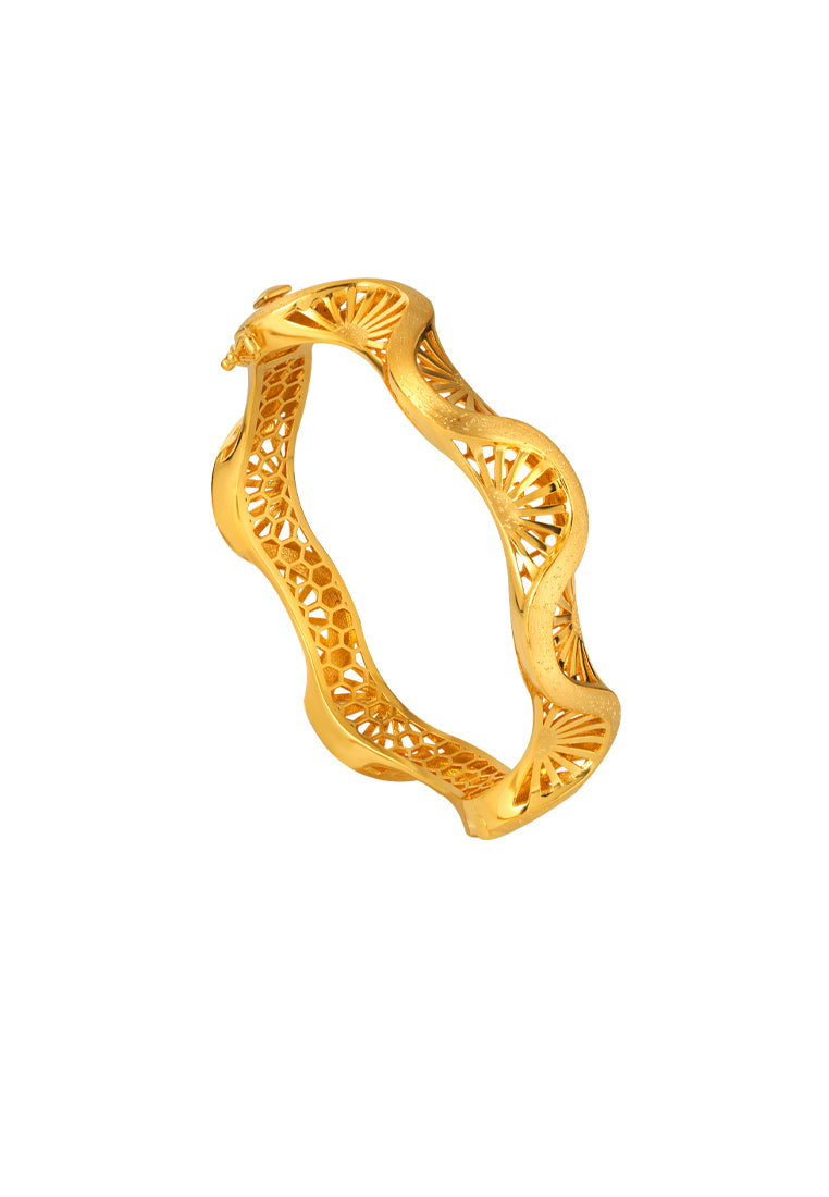 TOMEI Hollow Curvy Bangle, Yellow Gold 916