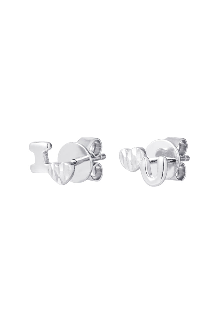 TOMEI I Love U Earrings, White Gold 585