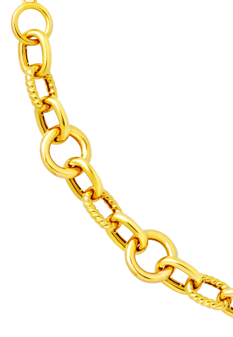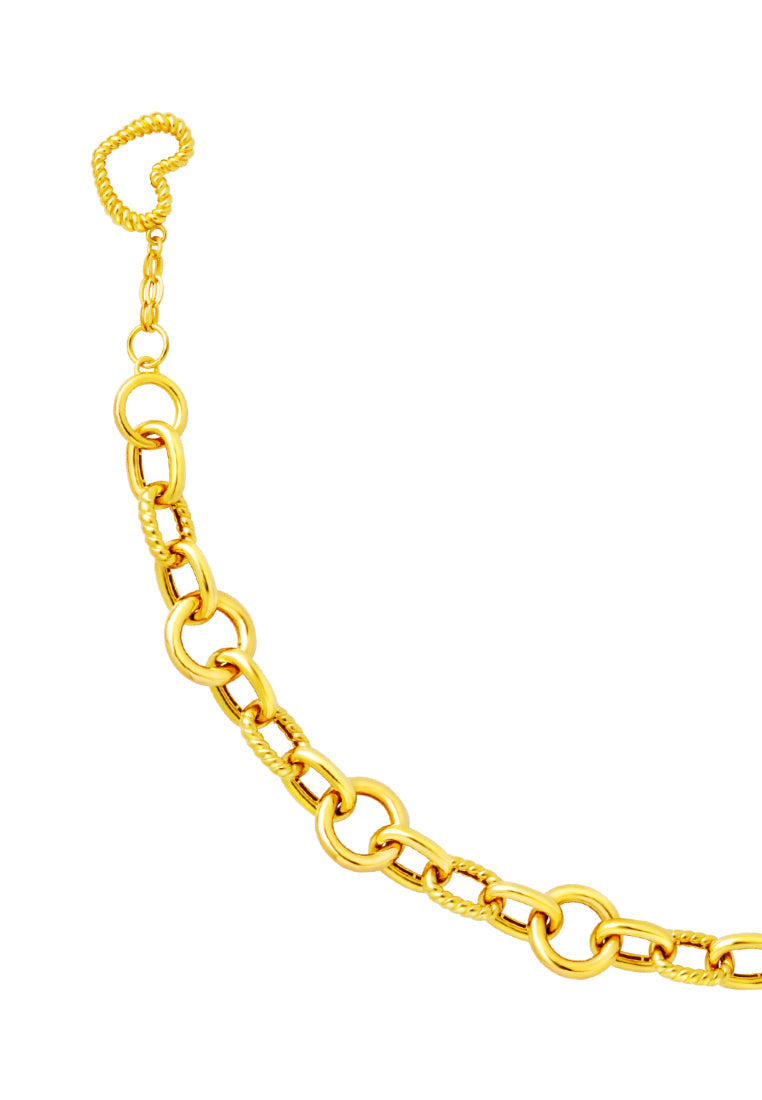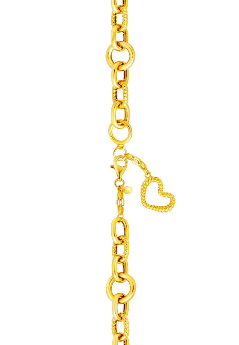 TOMEI Interlocking Ribbed Heart Bracelet, Yellow Gold 916