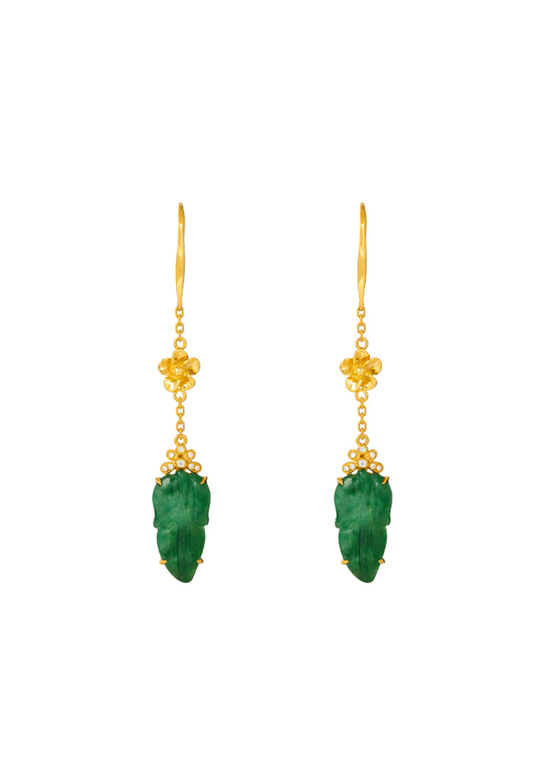 TOMEI Jadeite Dangling Earrings, Yellow Gold 750
