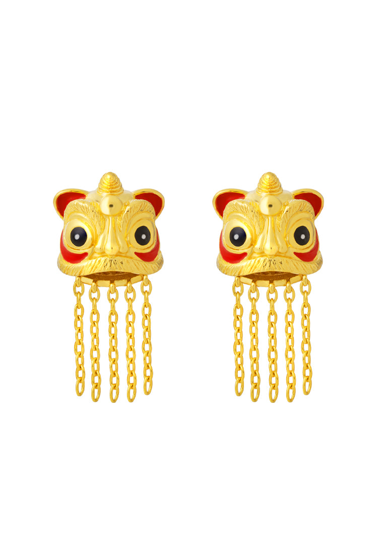 TOMEI Lion Dance Tassels Earrings, Yellow Gold 916