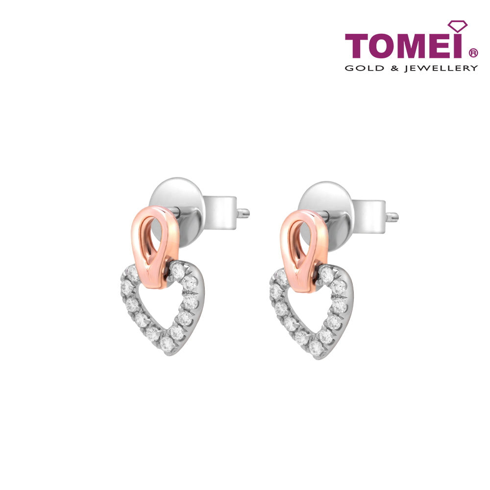 TOMEI Love Is Beautiful Collection Diamond Earrings, White+Rose Gold 585