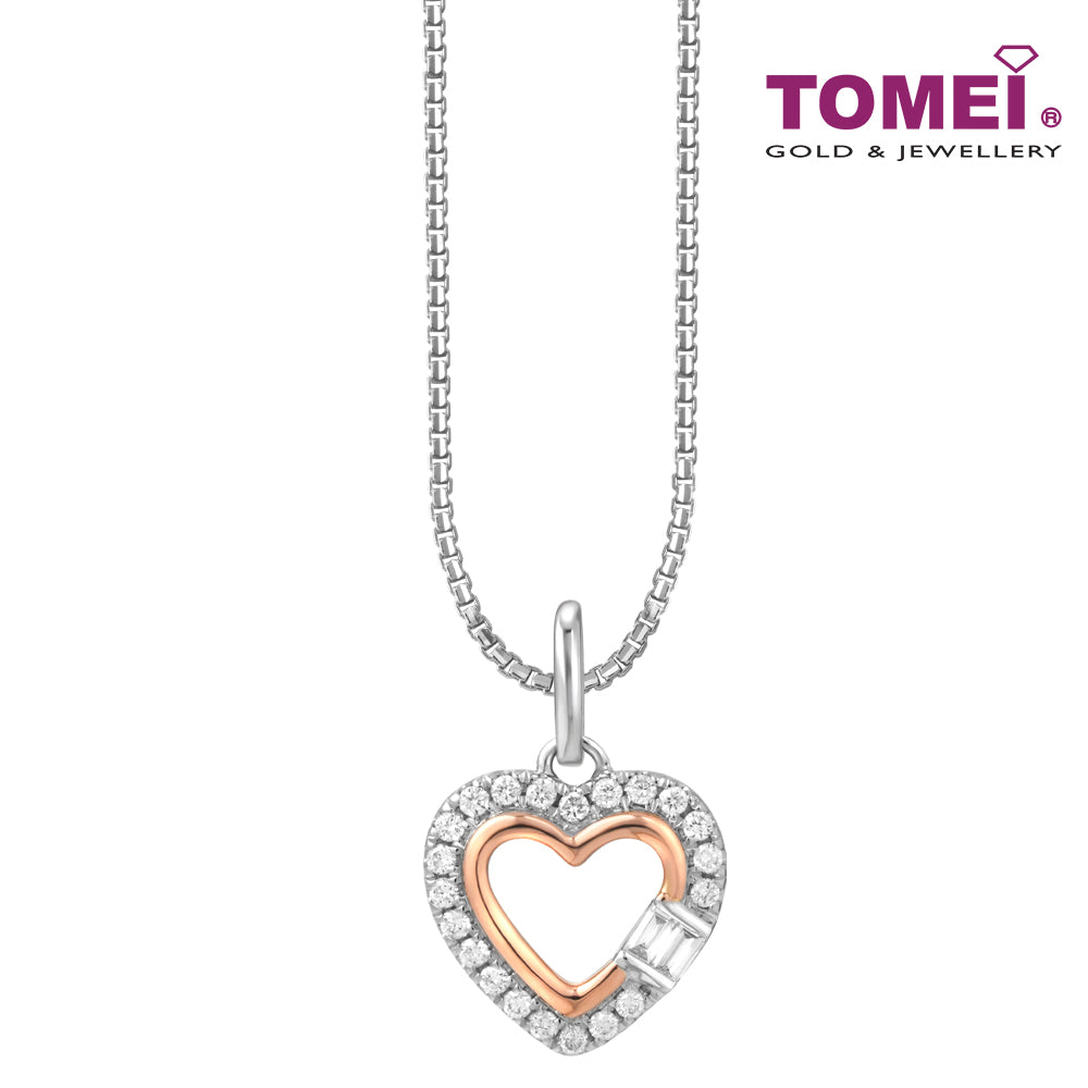 TOMEI Love Is Beautiful Collection Pendant Set, White+Rose Gold 585