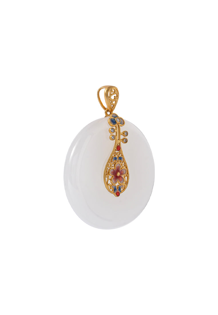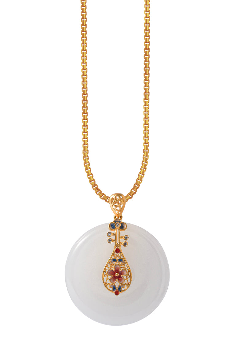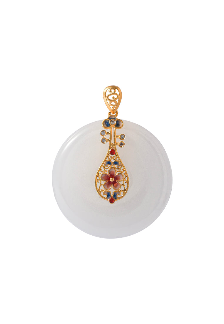 TOMEI Nephrite Collection Lute Pendant, Yellow Gold 750