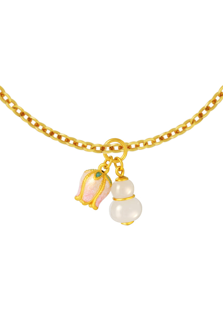 TOMEI Nephrite Pink Lotus Charm, Yellow Gold 999