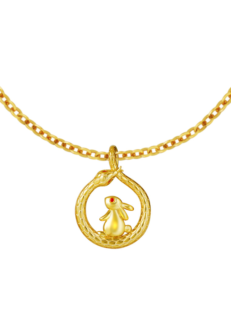 TOMEI Rabbit & Snake Pendant, Yellow Gold 916