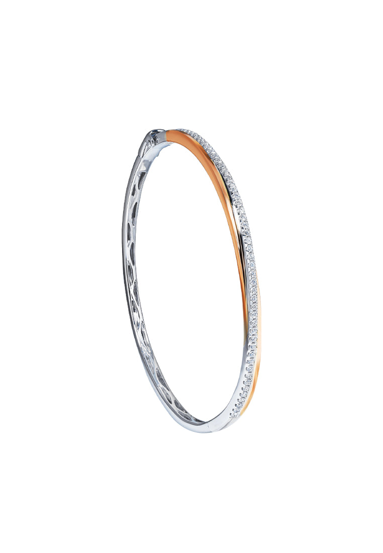 TOMEI Rosy Winter Collection Diamond Bangle, White+Rose Gold 585