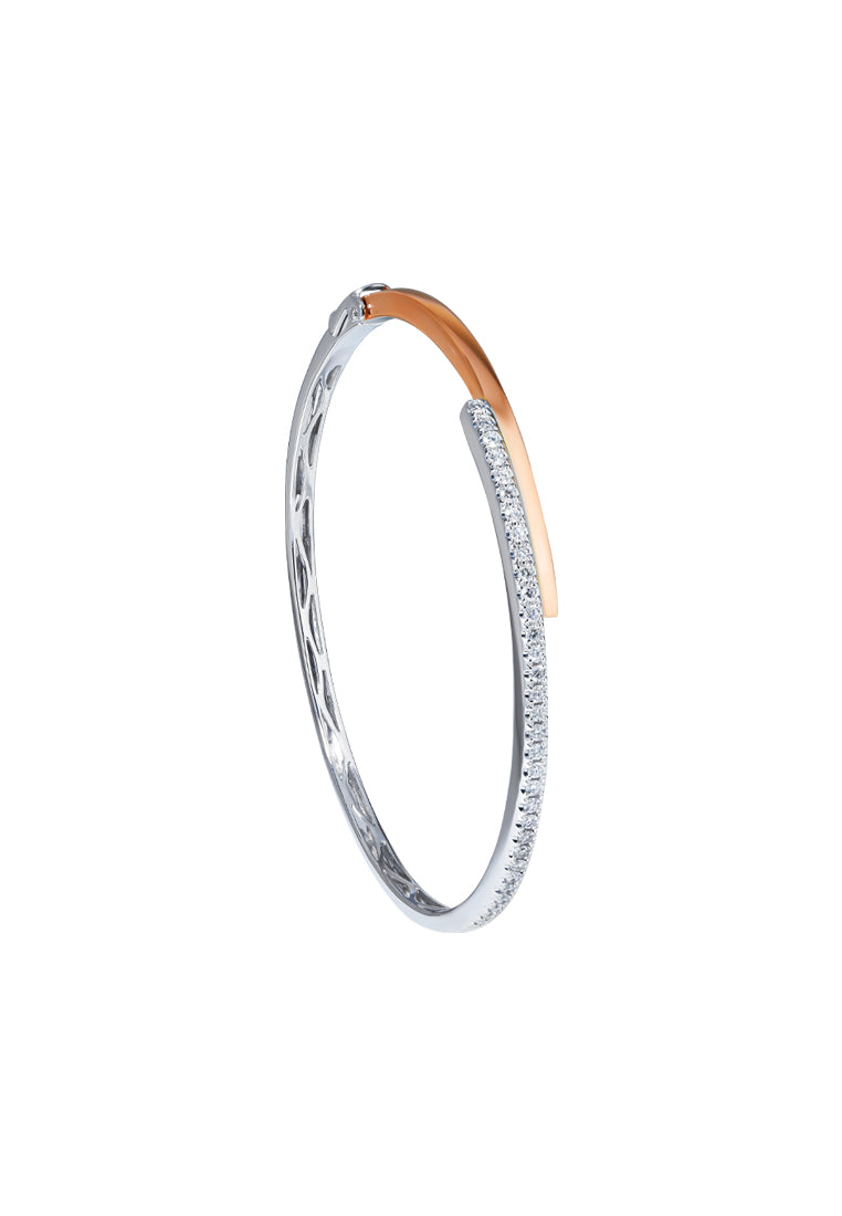 TOMEI Rosy Winter Collection Diamond Bangle, White+Rose Gold 585