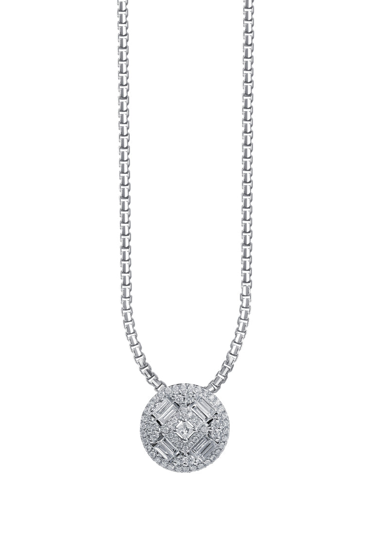 TOMEI Rounded Sparkling Diamond Pendant, White Gold 750